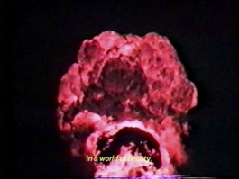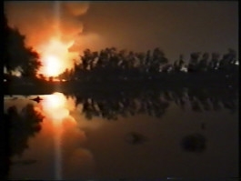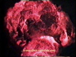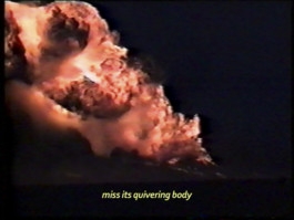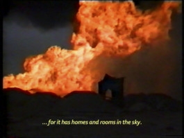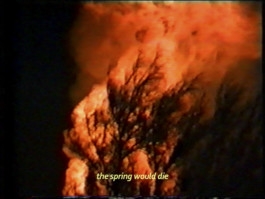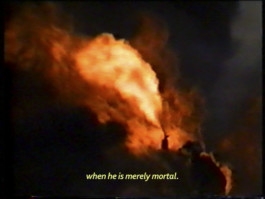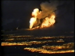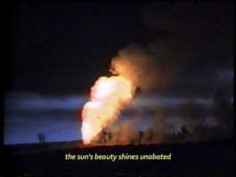 Amateur VHS video footage of the oil fires is juxtaposed with audio monologues from Islamic television programs of the same period. At the time, the tools used to represent religion – specifically Islam – were mainly geared towards visualizing god through natural miracles. Trees, waterfalls, mountains, animals and insect life were the visual staple of religious media, and the narration was not that of the Koran, but of beautiful Arabic poetry recited by a skilled orator with a deep voice. This holistic image of religion has been replaced by more socio-political interpretations of scripture, so the images of dying nature also effectively represent the death of nature within religion. Its subsequent mutation into new extreme imaginaries parallels the transforming portrait of “the end of the world.”