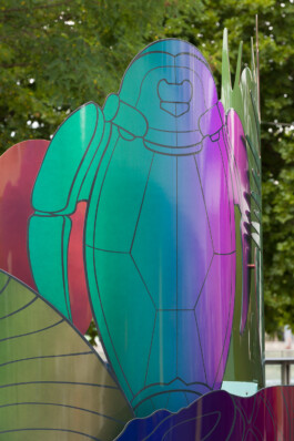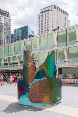 In this project, those beings that we currently use as fuel and plastics via petroleum come alive again as colourful illustrative panels, circularly conjoined together as if to form a single entity. The panels are painted in iridescent oil-like hues, as if to visually time travel to their future anatomy millions of years later.
