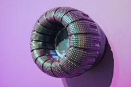 Based on the heads of oil drills, these alien-like sculptural objects liken these machines to intruders from another planet. Here the substance of oil is presented as an alien visitor that dramatically changed the historical narrative of an entire region, forever altering its bodies and landscapes.