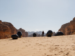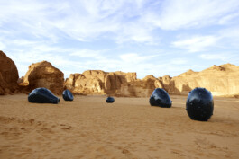 In this project, the Wabar Pearls are recreated as giant black objects spread across the sandy landscape of Al Ula, almost as if they had fallen out of the sky. The work is meant to inspire the same sense of mystery and wonder that the people of the Empty Quarter had felt upon seeing these strange objects, and the magical stories one might concoct because of their presence.